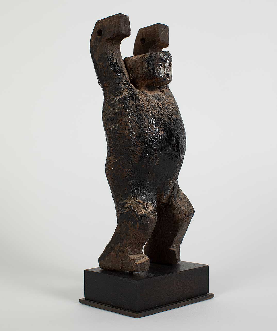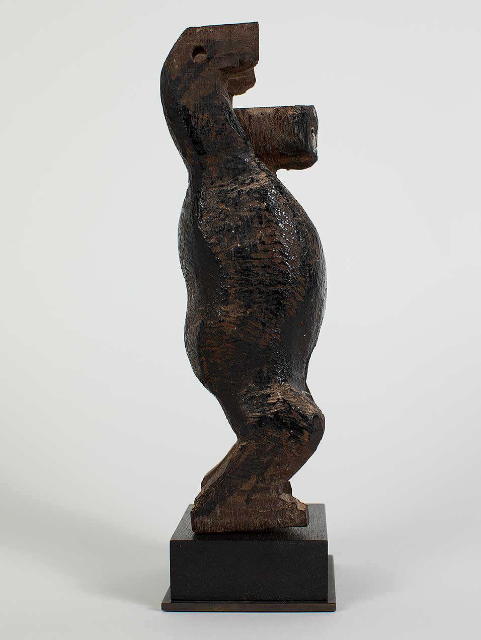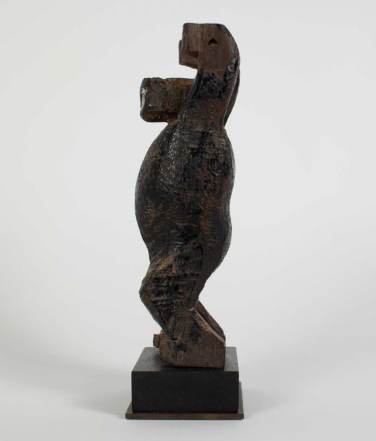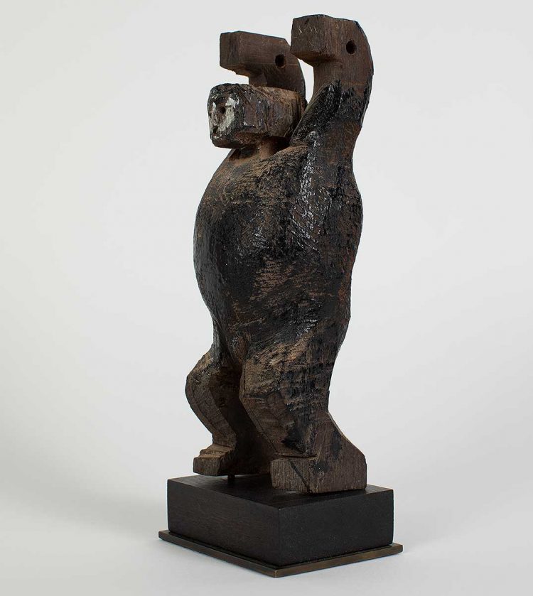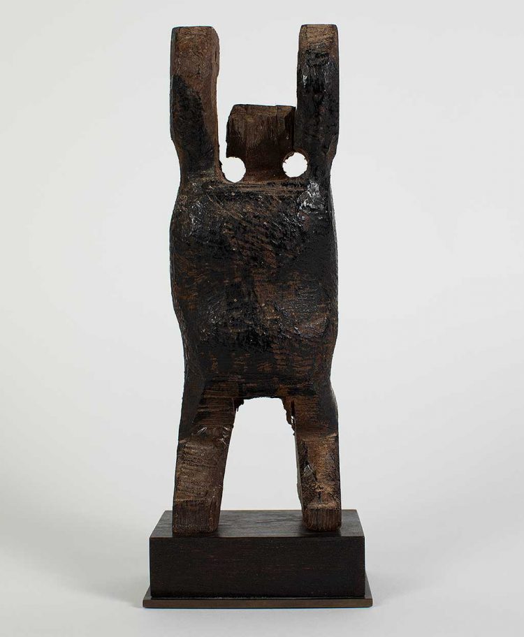 This enigmatic figure would have been suspended from the top of a Ngaju Soul Boat. Soul ships were created to commemorate ancestors and to ease their journey to the ‘land of departed souls’. Ceremonies, together with effigies, ships and shrines all provided a protective space for the living to safely say goodbye to the deceased, and for the deceased to take an approving and last lingering look at the living.
