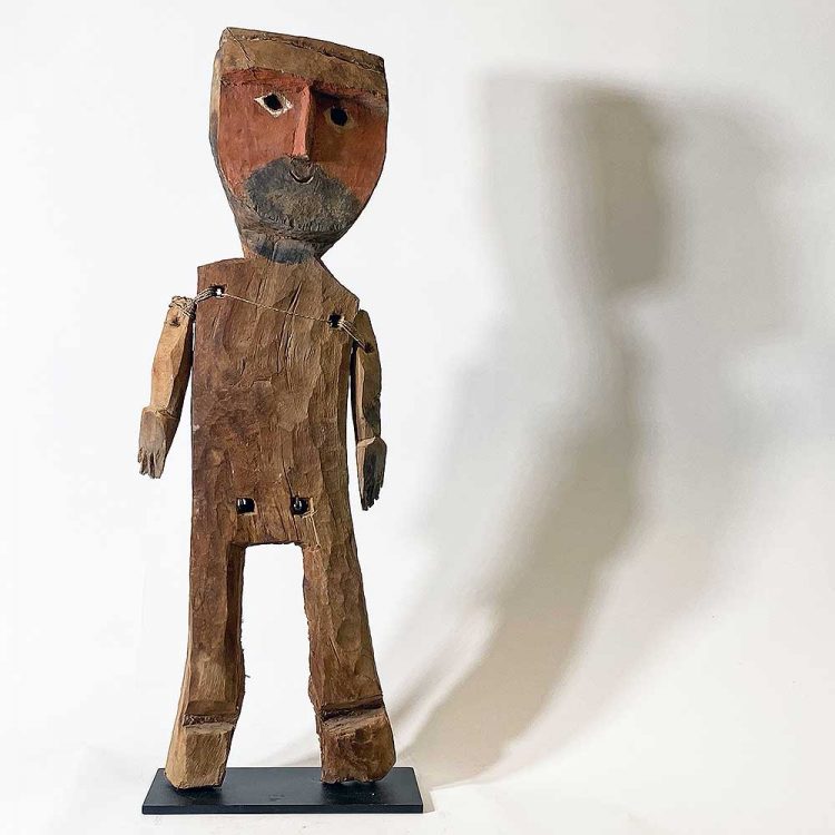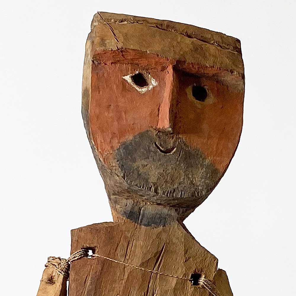 Wood, pigment, string on a metal base