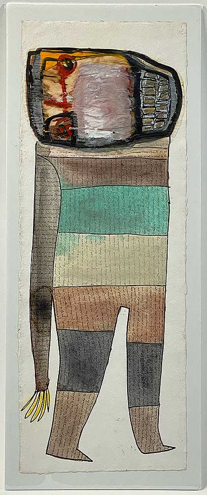 A whimsical demi-monster from a series of 55 paintings with text from Joseph Conrad’s Heart of Darkness inscribed in the background. Originally shown as part of The Right Hand of Darkness, the artist’s first show in the US in 2011.