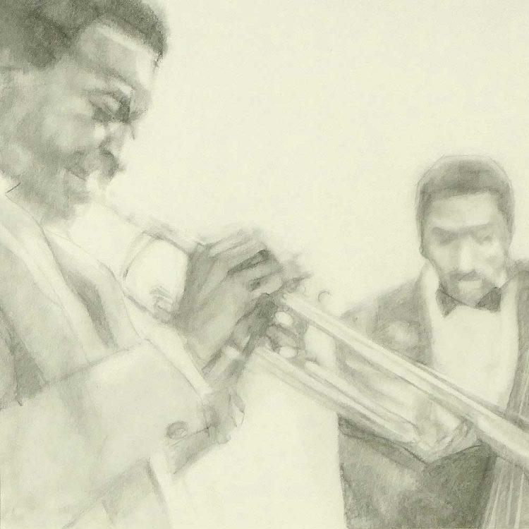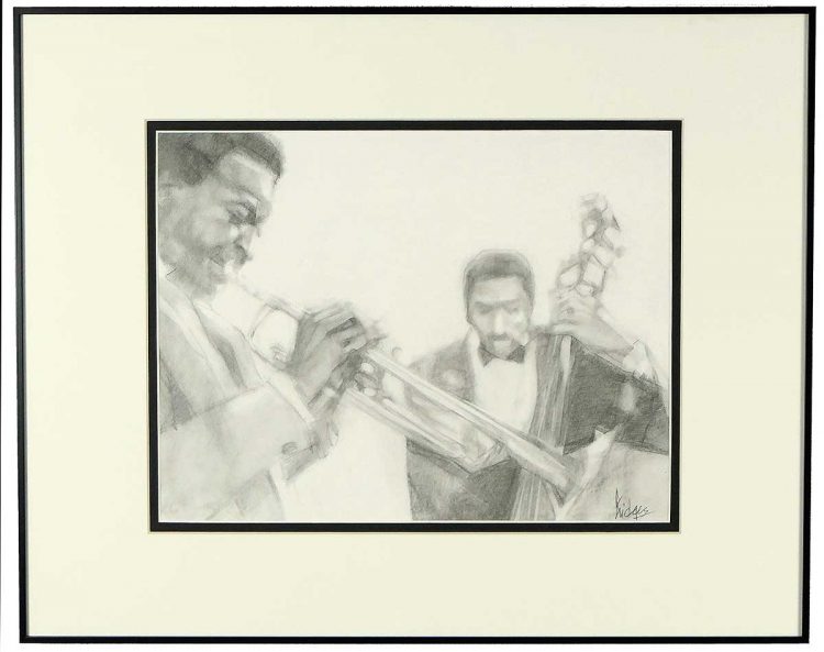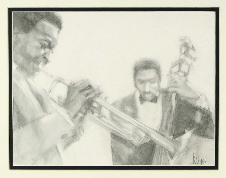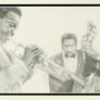 A wonderfully composed drawing of two musicians, placed to suggest the independence and interdependence necessary for the spontaneity of this American musical form.