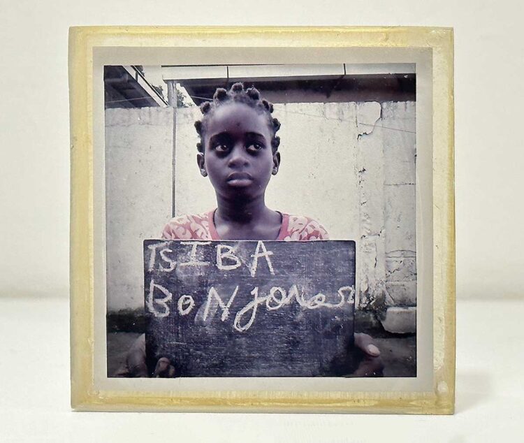 Photograph embedded in a resin block