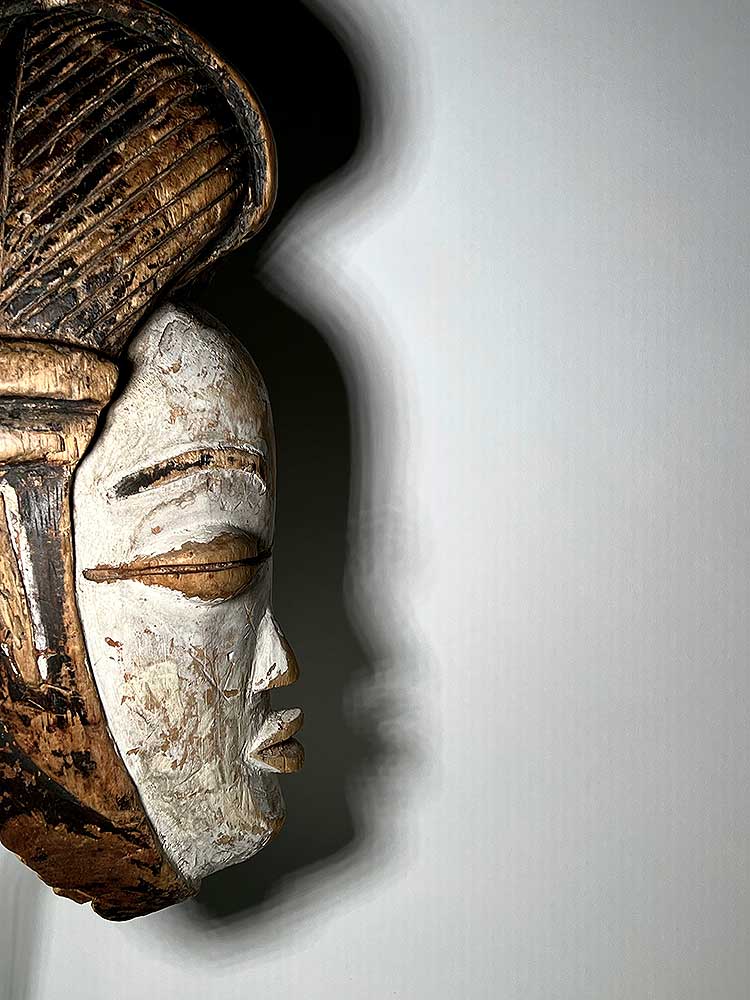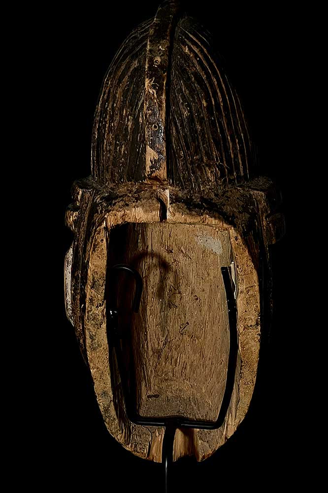 Out of the 1060 Punu masks documented in the Guy Van Rijn archives, this is the only mask that has a line carved across the eyes (Object ao-0049686-001)