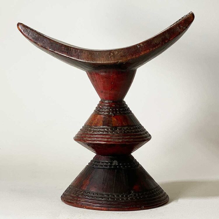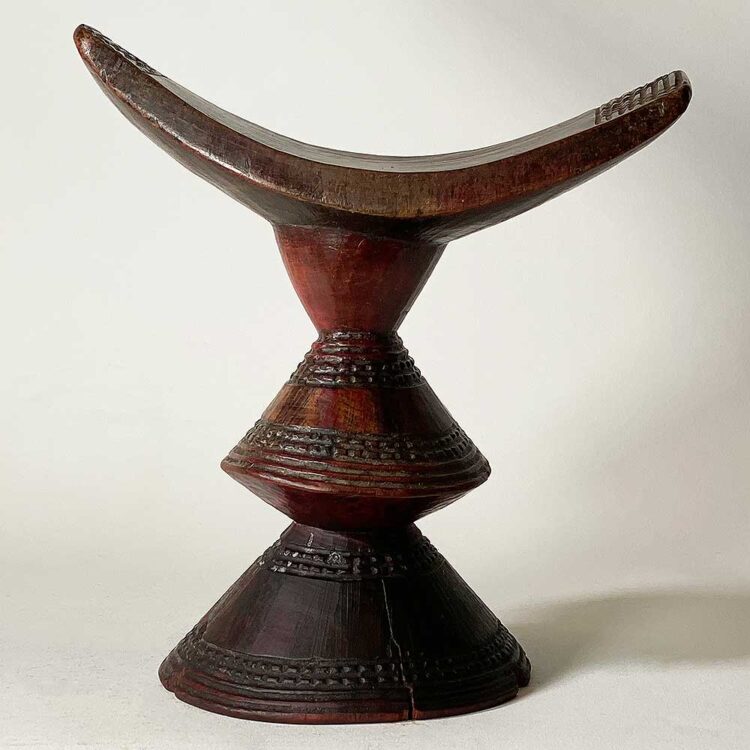 This type of headrest was carved with the intent to keep a sleeper’s coiffure off the ground. Not only can one spend a lot of time to create an elaborate and intricate hairstyle, but they would wish to preserve it as it will represent identifying markers of rank, social status, or age for example.
