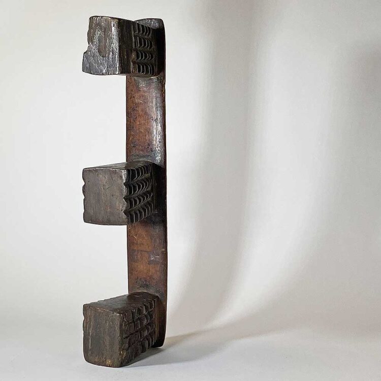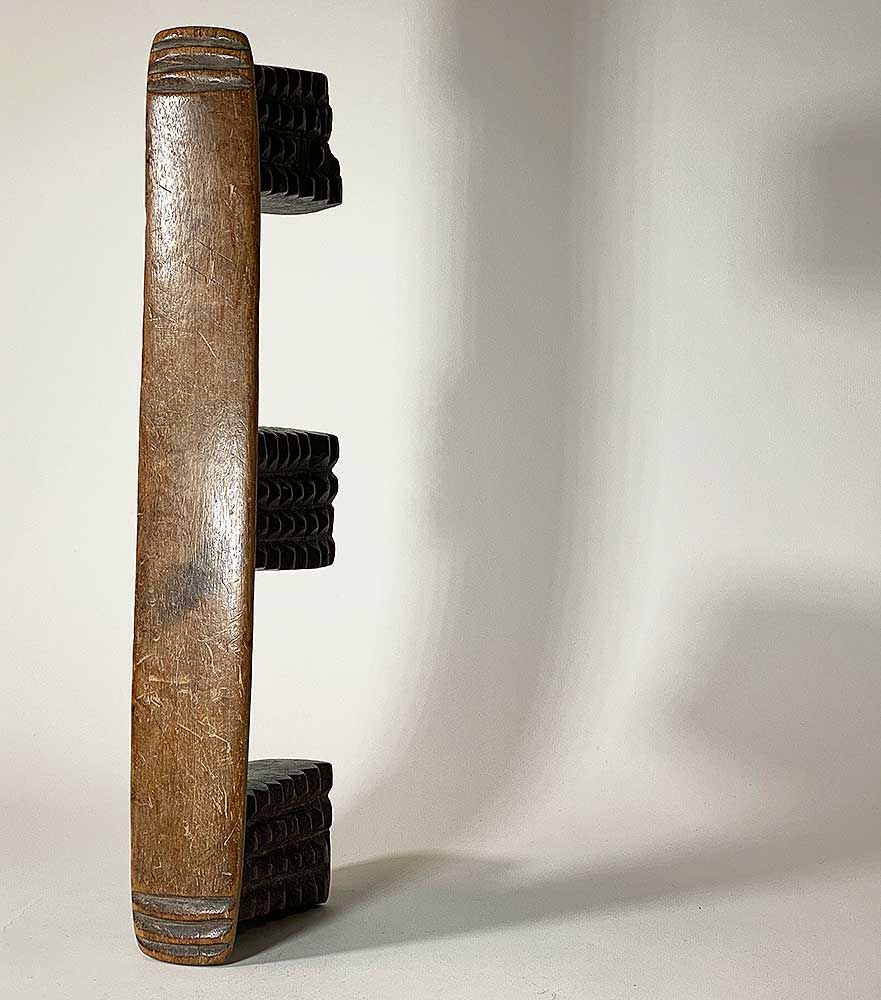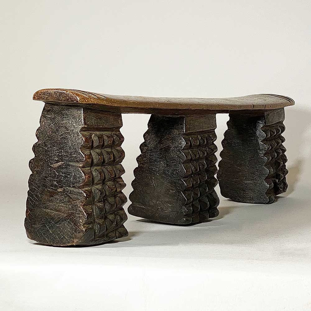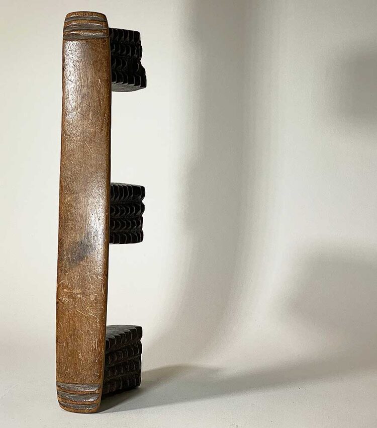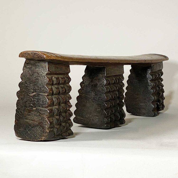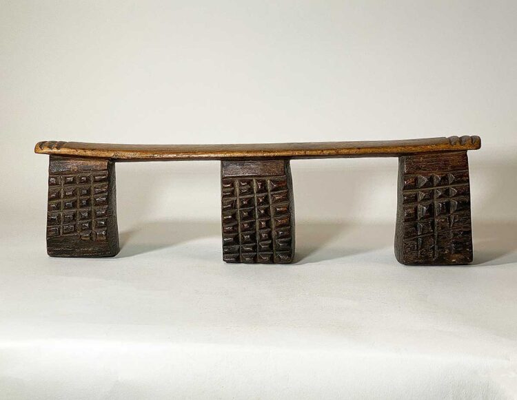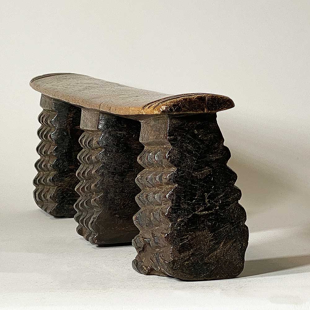 A Zulu headrest, the legs adorned with the small nodule pattern also know as amasumpa, is believed to be an ancestral link. It is an instrument that connects the world of the living with the beyond through sleep and dreams.